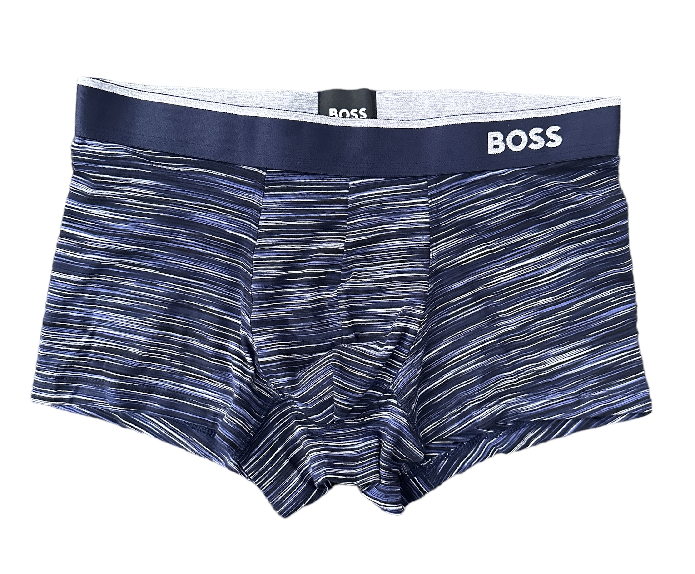 Charakteristische BOSS Boxershorts aus einem elastischen Gewebe mit mittlerer Bundhöhe, Logo-Bund und saisonalem Muster.