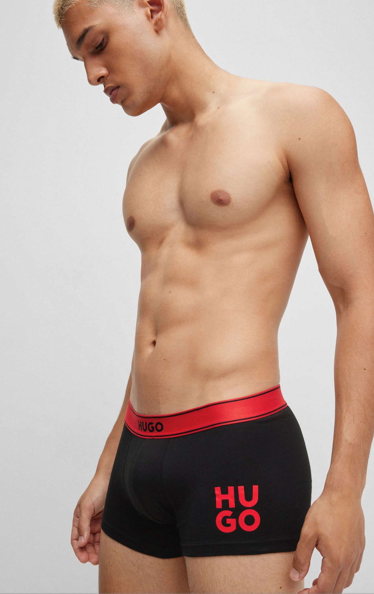 HUGO Boxershorts der neuen Saison. Die cleane Herren-Shorts mit mittlerer Bundhöhe ist aus elastischem Baumwoll-Jersey gefertigt und mit einem sichtbaren Bund mit HUGO Logo versehen.