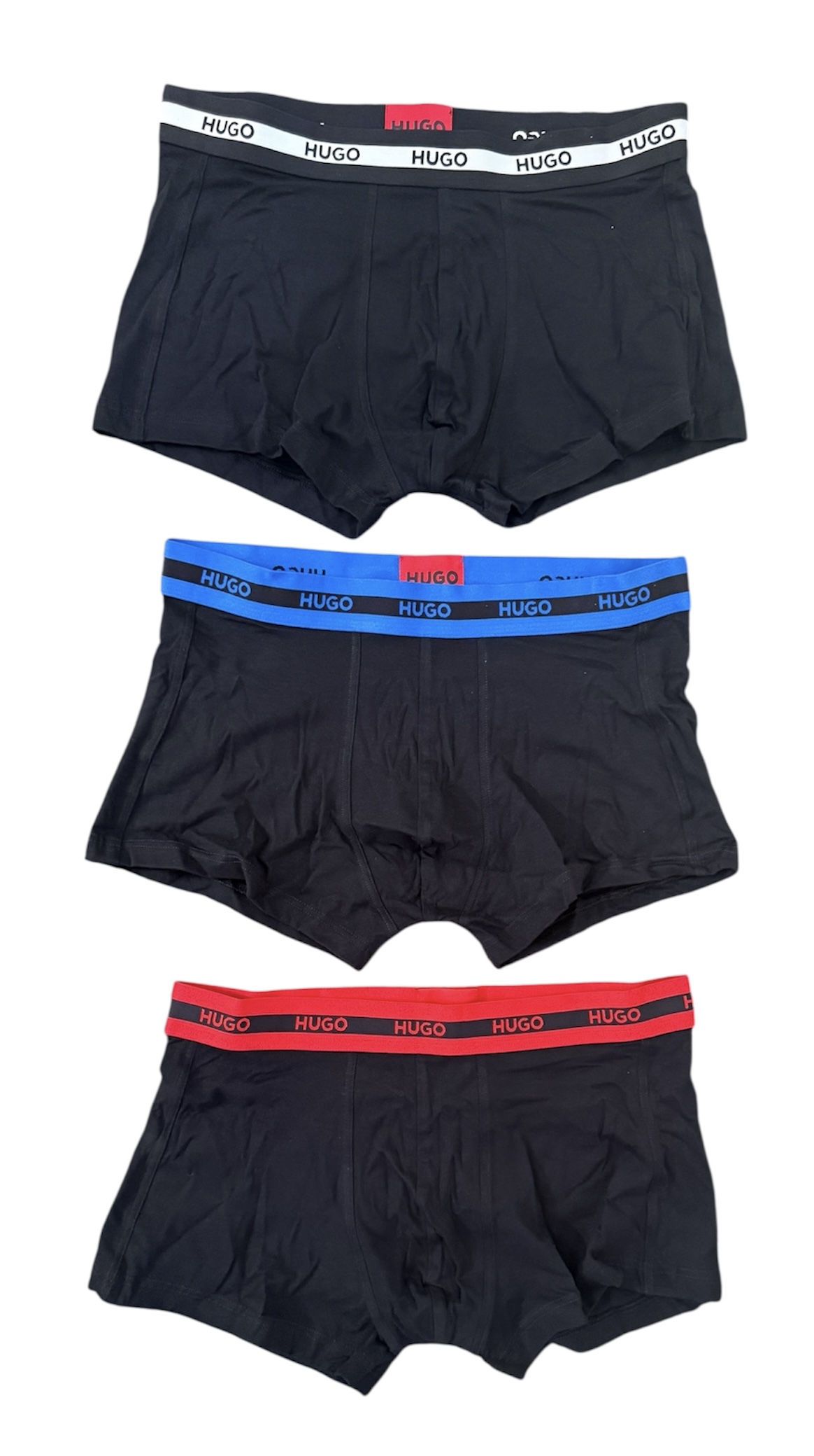 Drei Paar eng anliegende HUGO Boxershorts mit Logo-Bund und kurzem Bein. Die Unterwäsche mit mittlerer Bundhöhe ist aus besonders softem Stretch-Jersey gefertigt und verspricht hohen Tragekomfort.
