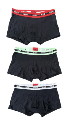 Drei Paar eng anliegende HUGO Boxershorts mit Logo-Bund und kurzem Bein. Die Unterwäsche mit mittlerer Bundhöhe ist aus besonders softem Stretch-Jersey gefertigt und verspricht hohen Tragekomfort.