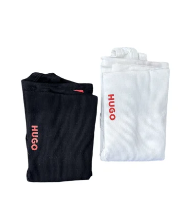 Zweier-Pack HUGO Tanktops aus gerippter Stretch-Baumwolle mit schmaler Passform und vertikalem Logo-Print.