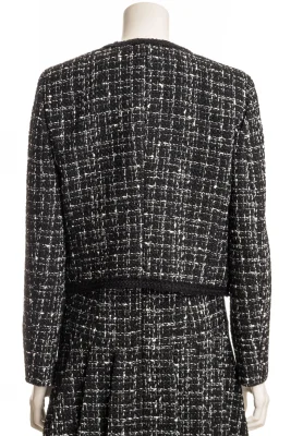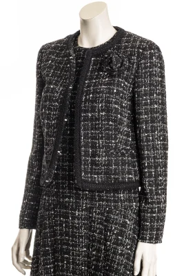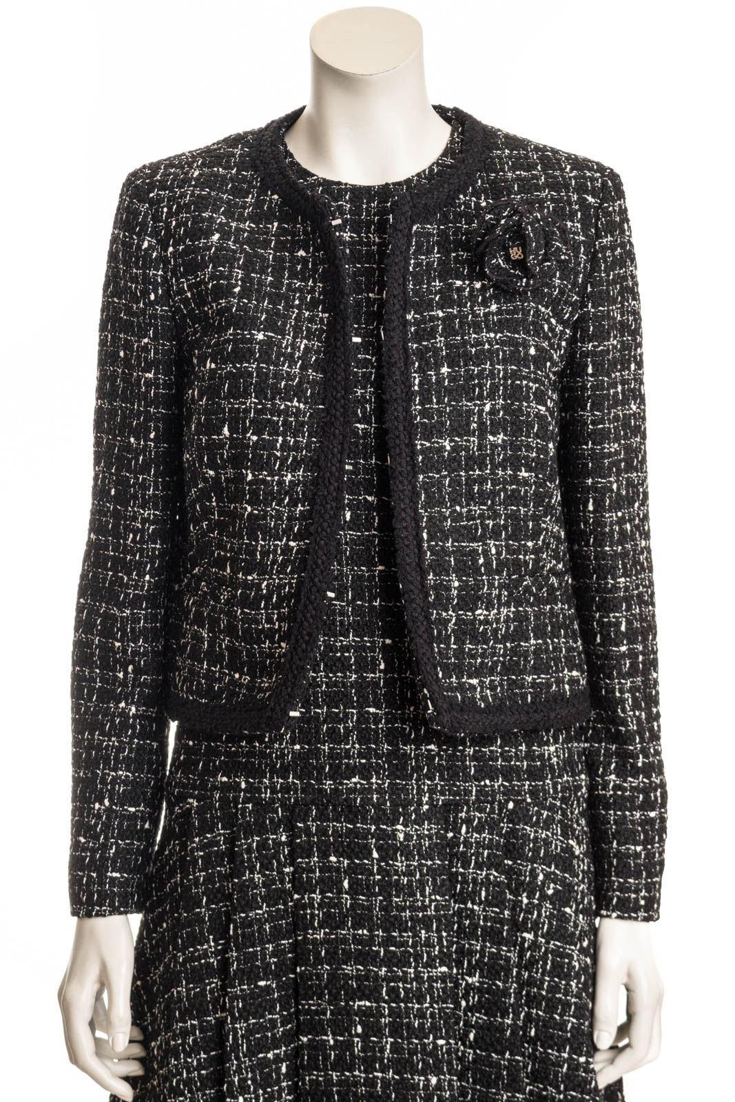 Kurzer Bouclé-Blazer mit abnehmbarer Brosche und eingefasstem Saum.