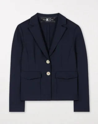 Feminin geschnittener Blazer aus Punto Milano. Die teilweise gefĂĽtterte Jacke besitzt einen Reverskragen, einen Zwei-Knopf-Verschluss und aufgesetzte Pattentaschen.