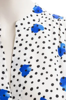 Gerade geschnittene, kragenlose BOSS Bluse aus leichter Seide mit Print der neuen Saison und verdecktem Verschluss.
