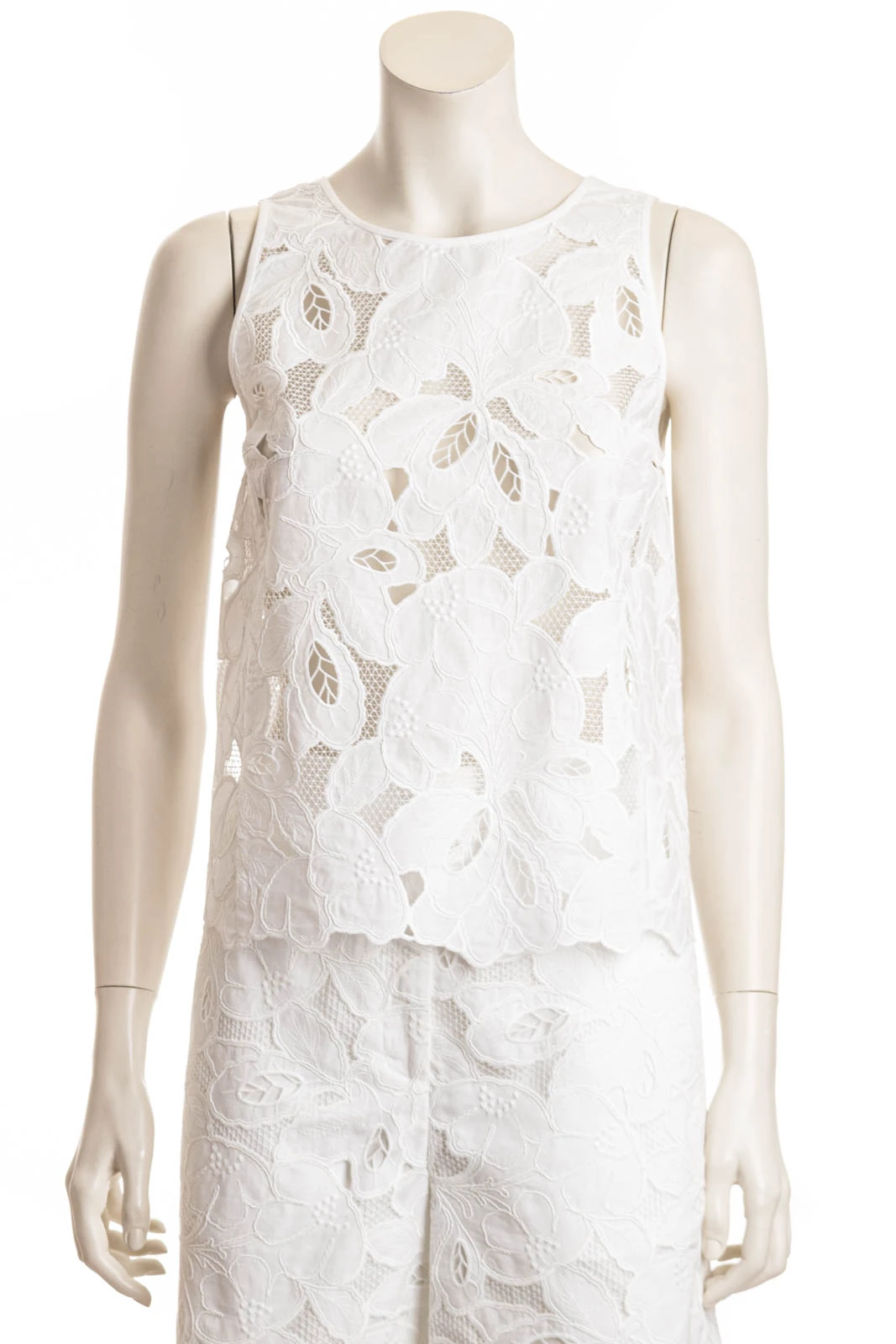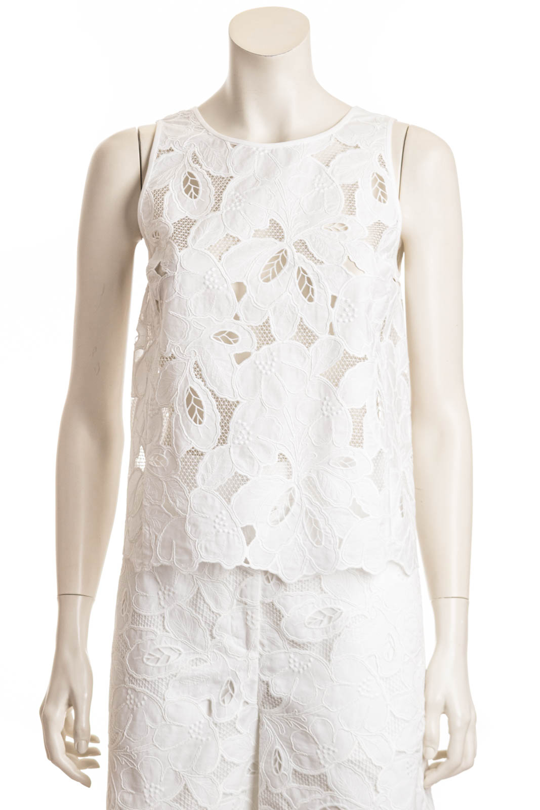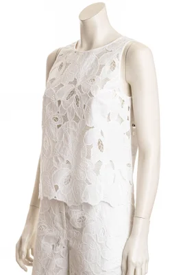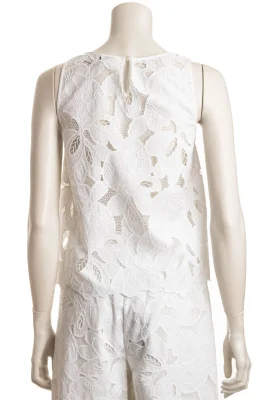 Die BOSS Bluse mit atmungsaktivem Baumwoll-Einsatz ist mit schicken Stickereien versehen. Ärmellose Silhouette mit Knopf auf der Rückseite.