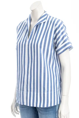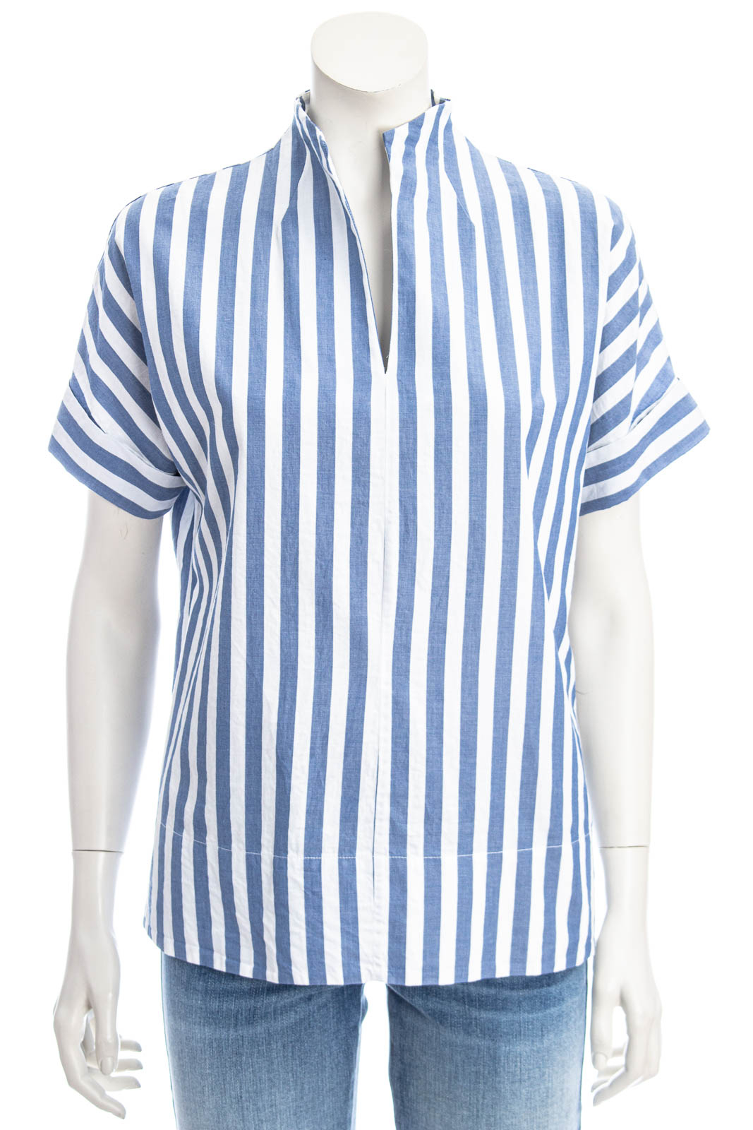 In die tailliert geschnittene Bluse aus fein texturierter Baumwoll-Popeline kann man sich nur verlieben! Dank ihres puristischen Looks ist sie ein facettenreich kombinierbares 24/7-Talent, das mit genau der richtigen Portion Raffinesse auftrumpft.