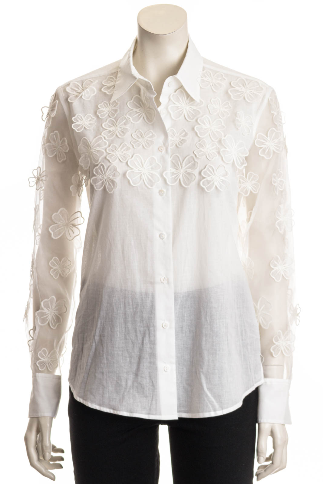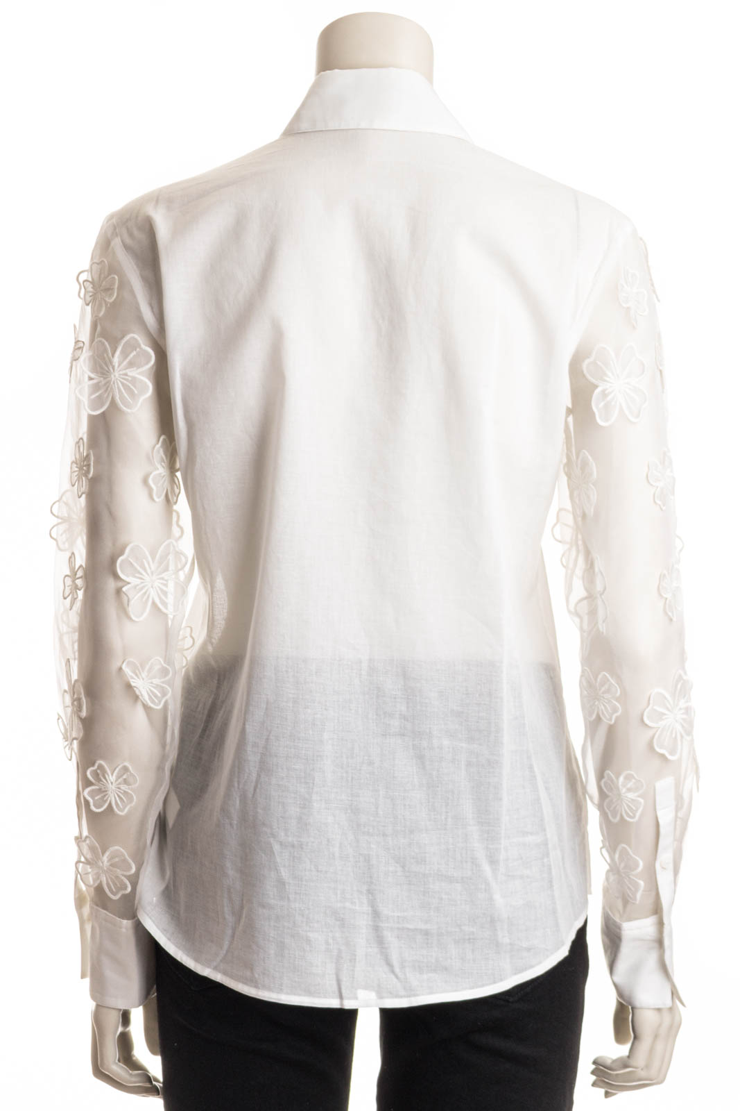 Diese leicht taillierte Hemdbluse vereint feine Materialien mit kunstvollen Details. Die langen Ärmel aus zartem Seidenorganza setzen einen transparenten, edlen Akzent, während die 3D-Blumenapplikation aus Seidenorganza für ein raffiniertes, feminine Highlight sorgt.