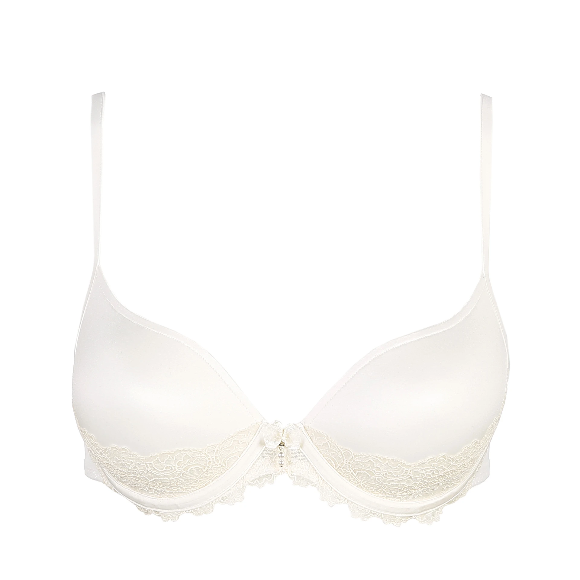 Zeitlos eleganter BH mit Spitzenbesatz auf den unterlegten Cups.