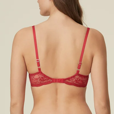 Der perfekte T-Shirt-BH! Die glatten gepolsterten Cups sind unter jedem Outfit diskret. Die verspielte Leavers-Spitze an Steg und RĂĽcken verleiht diesem Balconette-BH eine besonders festliche Note. Stark und festlich! Sangria ist eine knallrote Nuance, die Ihre Haut zum Strahlen bringt.