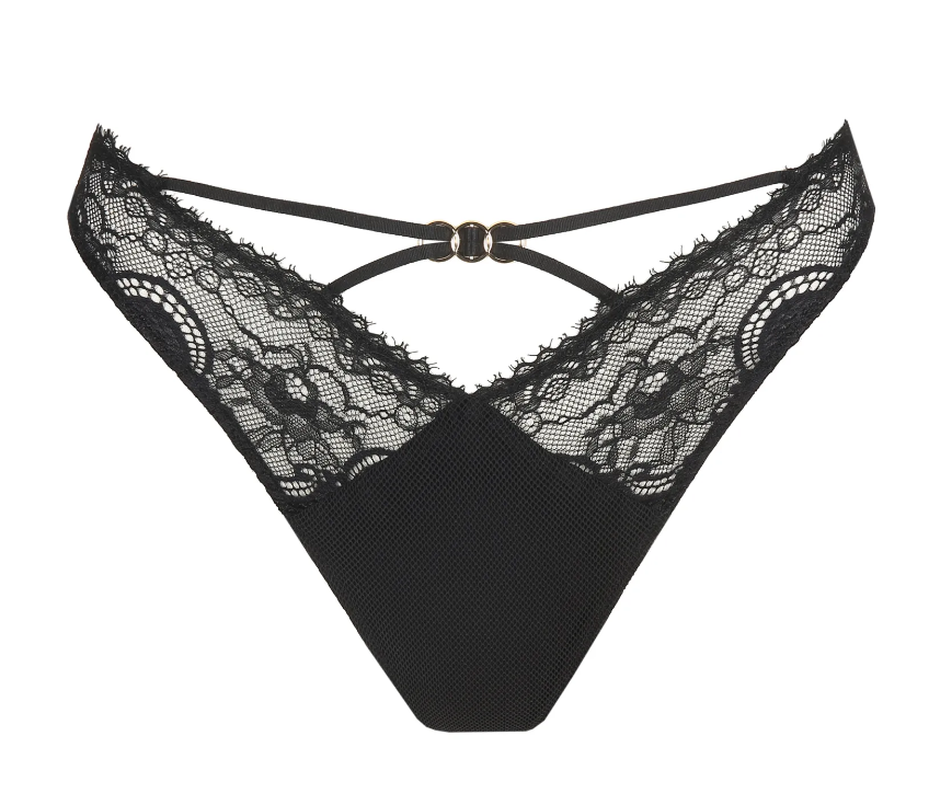 Dieser String mit italienischer Spitze und Schlangenmuster verleiht Ihrem Dessous-Set eine besonders verfĂĽhrerische Note. Zeitloses Schwarz ist eine unverzichtbare Grundfarbe in Ihrem Kleiderschrank.