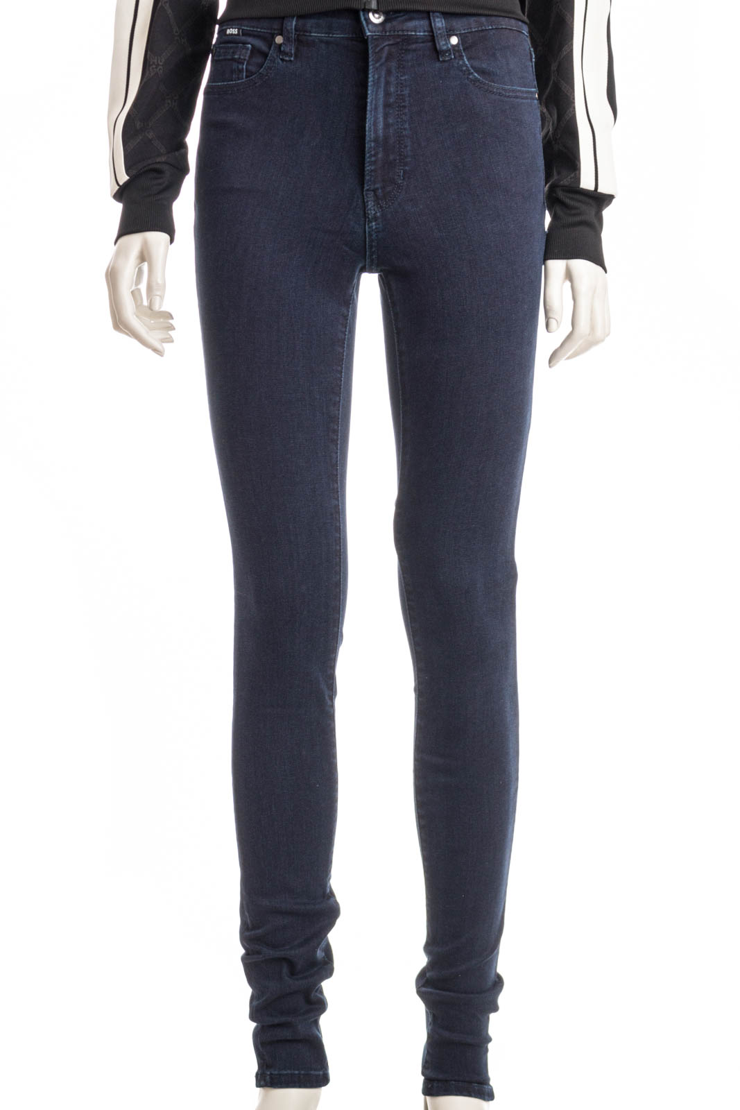 BOSS Jeans für jeden Tag. Die schmal geschnittene Hose mit hoher Bundhöhe ist aus Stretch-Denim und mit dunkelblauer Waschung gefertigt.