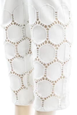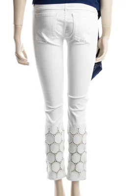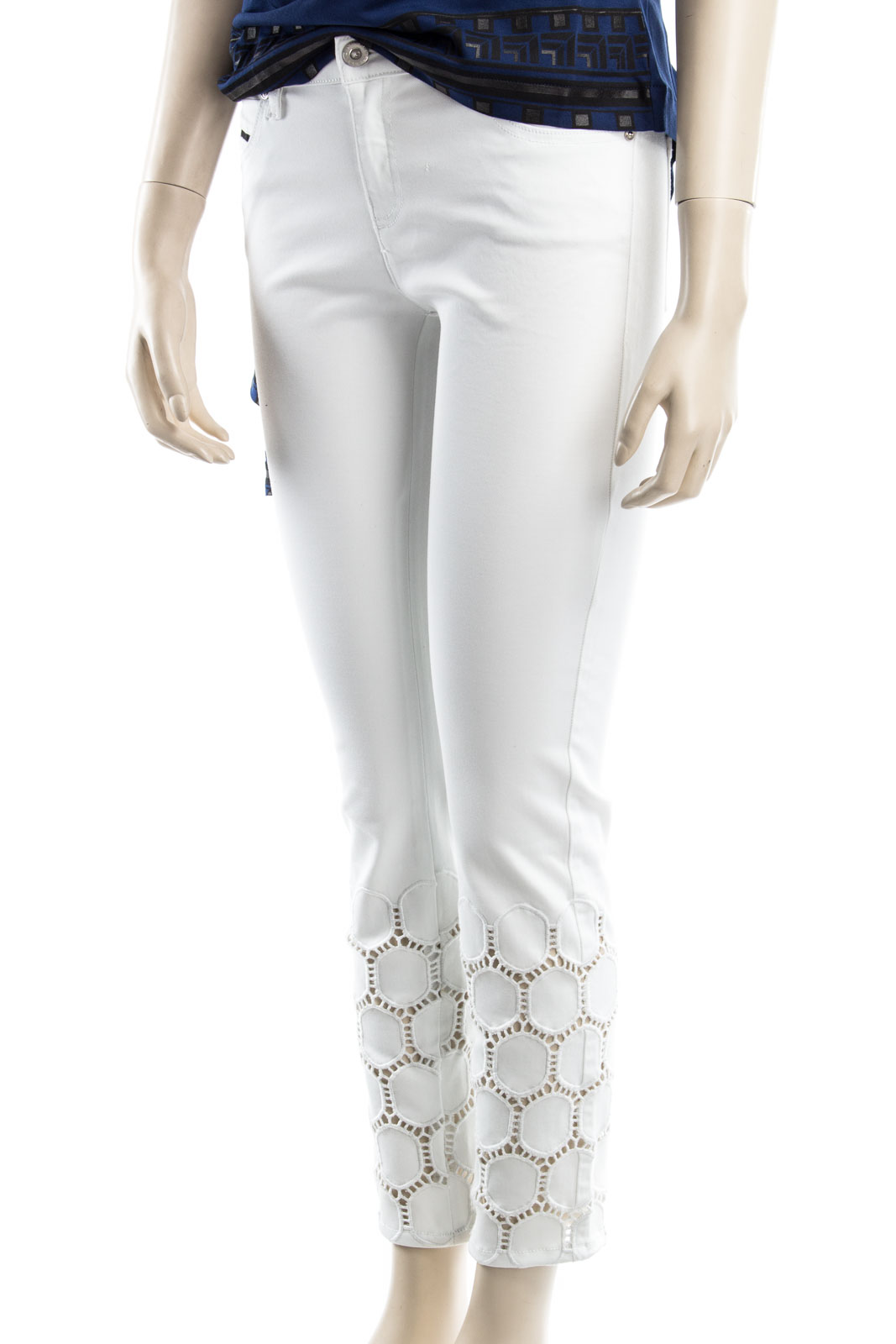 Eng geschnittene Jeans mit Lochstickerei am Bein.