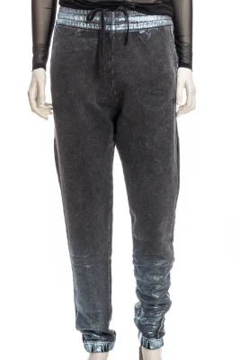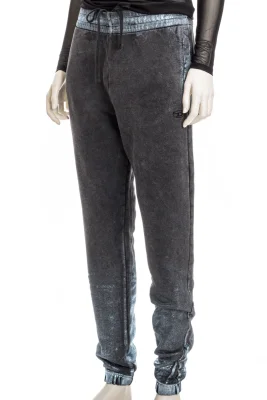 Pigmentgefärbte Trackhose für Damen, in soft-ausgebleichter Acid-Waschung mit schimmernder Metallic-Folienbeschichtung. Aus Loopback-Baumwolljersey in regulärem Fit, mit Tunnelzugbund und elastischen Bündchen. Mit gesticktem Oval D-Logo am Schenkel.