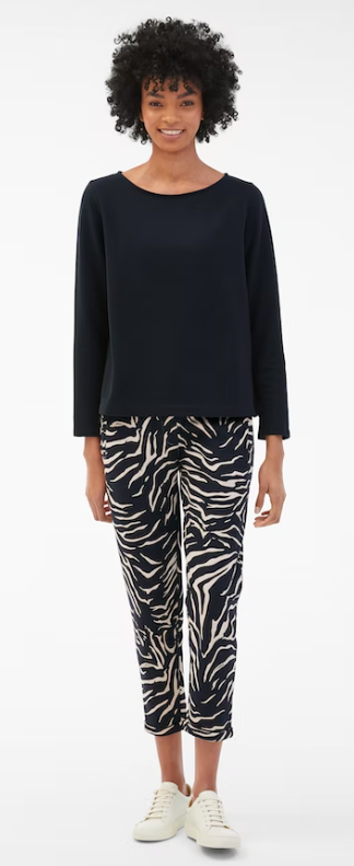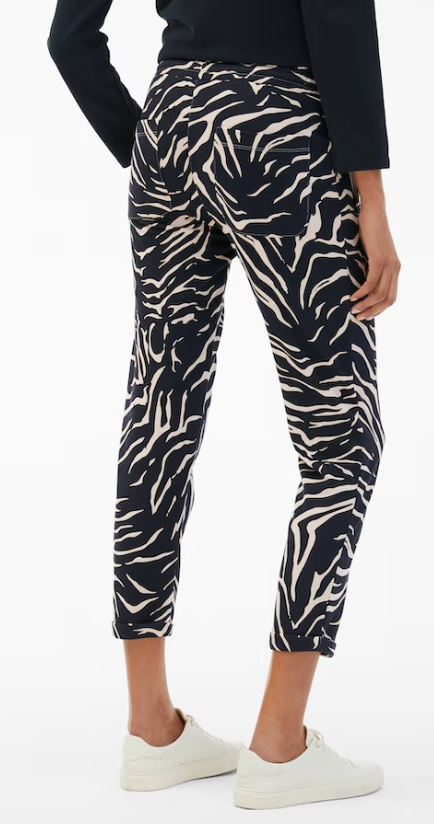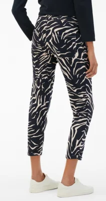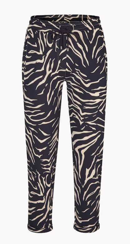 In moderner 7/8-Länge mit schmal fixierten Turn-up-Abschlüssen erhält die Sweatpants in Dark Navy ein stilvolles Update. Highlights setzt der„Zebra“ Allover-Print, ergänzt durch feine Details wie applizierte Gesäßtaschen und edle Metallenden am Tunnelzugbund.