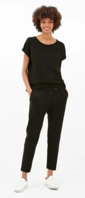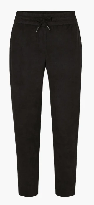Die schwarze Hose in softer Tech-Velours-Qualität begeistert als stilvoller Allrounder für feminine Styles.