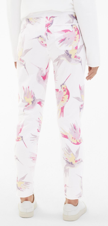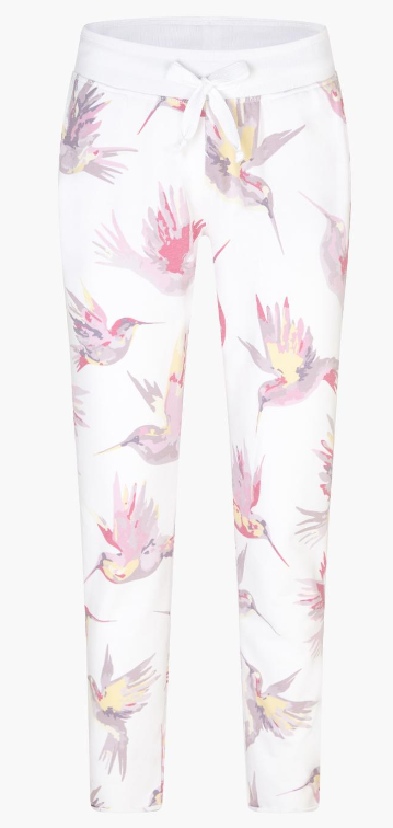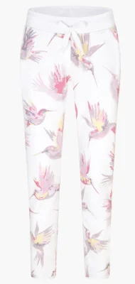 Der harmonische Mix aus White, Hot Pink, Buttercup und Lavender Frost als „Kolibri“ Allover-Print prägt den stylischen Look der femininen Sweatpants. Seitliche Eingrifftaschen, ein klassischer Rippbund sowie cosy Rollsäume ergänzen das Design. Pure Comfiness versprüht die labeltypische Devoré-Qualität.