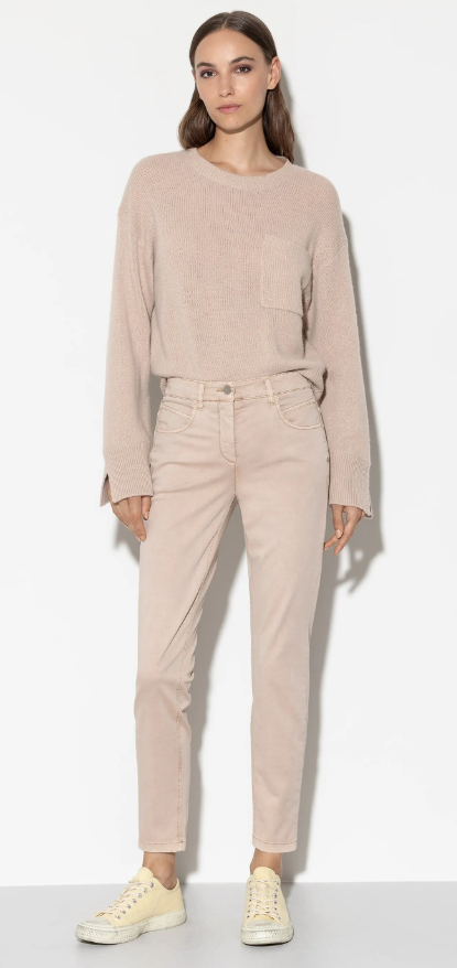 Schmal geschnittene Colour-Denim mit verkĂĽrztem Schnitt aus komfortablem Stretch-Material. Strategisch platzierte Nahtdetails setzen die schlanke, feminine Silhouette gekonnt in Szene.