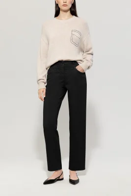Colour-Denim aus besonders weichem Stretch-Material. Die Hose präsentiert sich in moderner Tapered-Passform mit verkürztem Schnitt und ausgefallenem Taschen-Design.