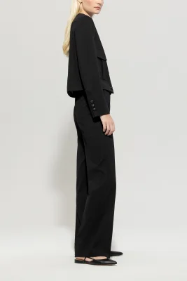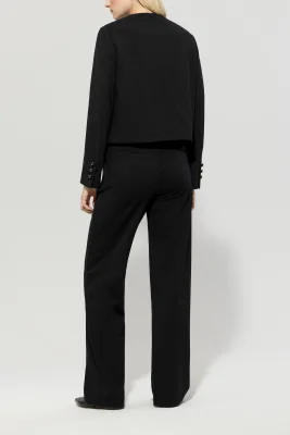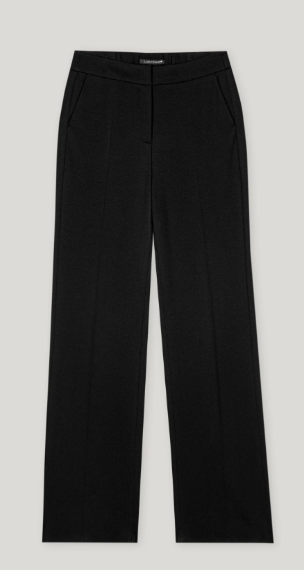 Lange Straightleg-Pants aus schwer fallendem Punto-Milano mit leichtem Stretch. Der gerade Schnitt mit Bügelfalten, zwei seitlichen Eingrifftaschen und zwei angedeuteten Gesäßtaschen verleiht der Hose einen klassischen Look.