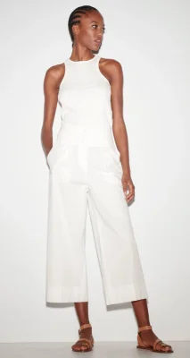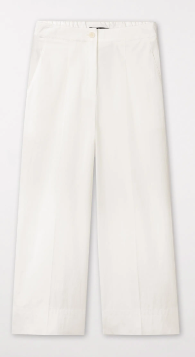 Verkürzte, weiter geschnittene Hose aus leichtem Gabardine-Stretch-Gewebe und Bundfalten. Der komfortable, teilelastische Bund sowie vier Taschen vervollständigen die Ausstattung.