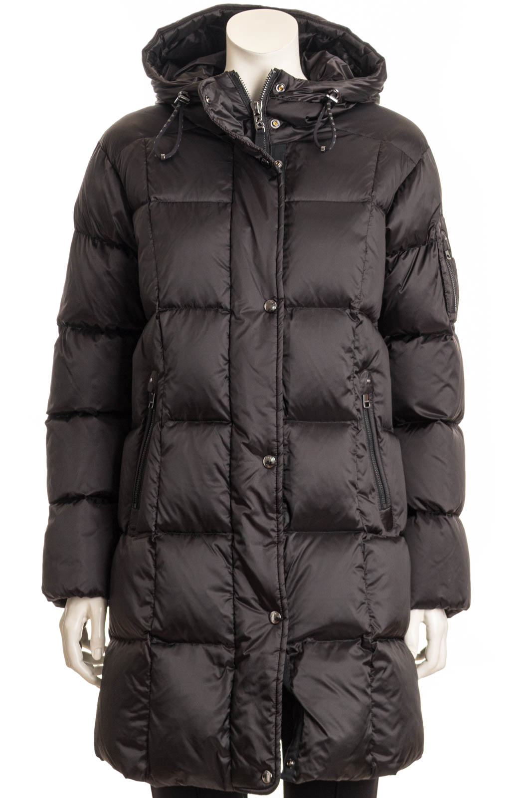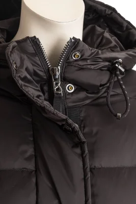 Mit justierbarer Kapuze, elastischen Ärmelabschlüssen und inwendigem Tunnelzug auf Taillenhöhe erweist sich der Daunenmantel Fanja als komfortabler Style, ergänzt durch den rückseitigen Zipper sowie seitliche Taschen. Typische Signature-Details runden das B-Jacket ikonisch ab.
