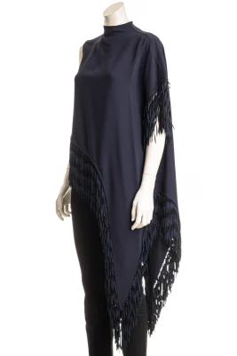 Der Poncho zeigt sich in einer unifarbenen Optik und fällt durch die langen Fransen ins Auge. Die Loose-Fit Passform sorgt für ein angenehmes Tragegefühl. Durch den asymmetrischen Schnitt eignet sich das Modell vielseitig für unterschiedliche Anlässe.