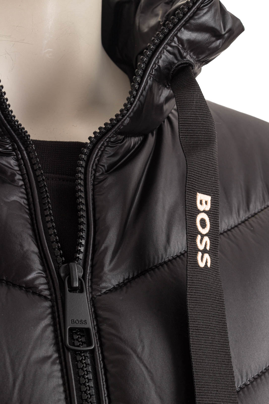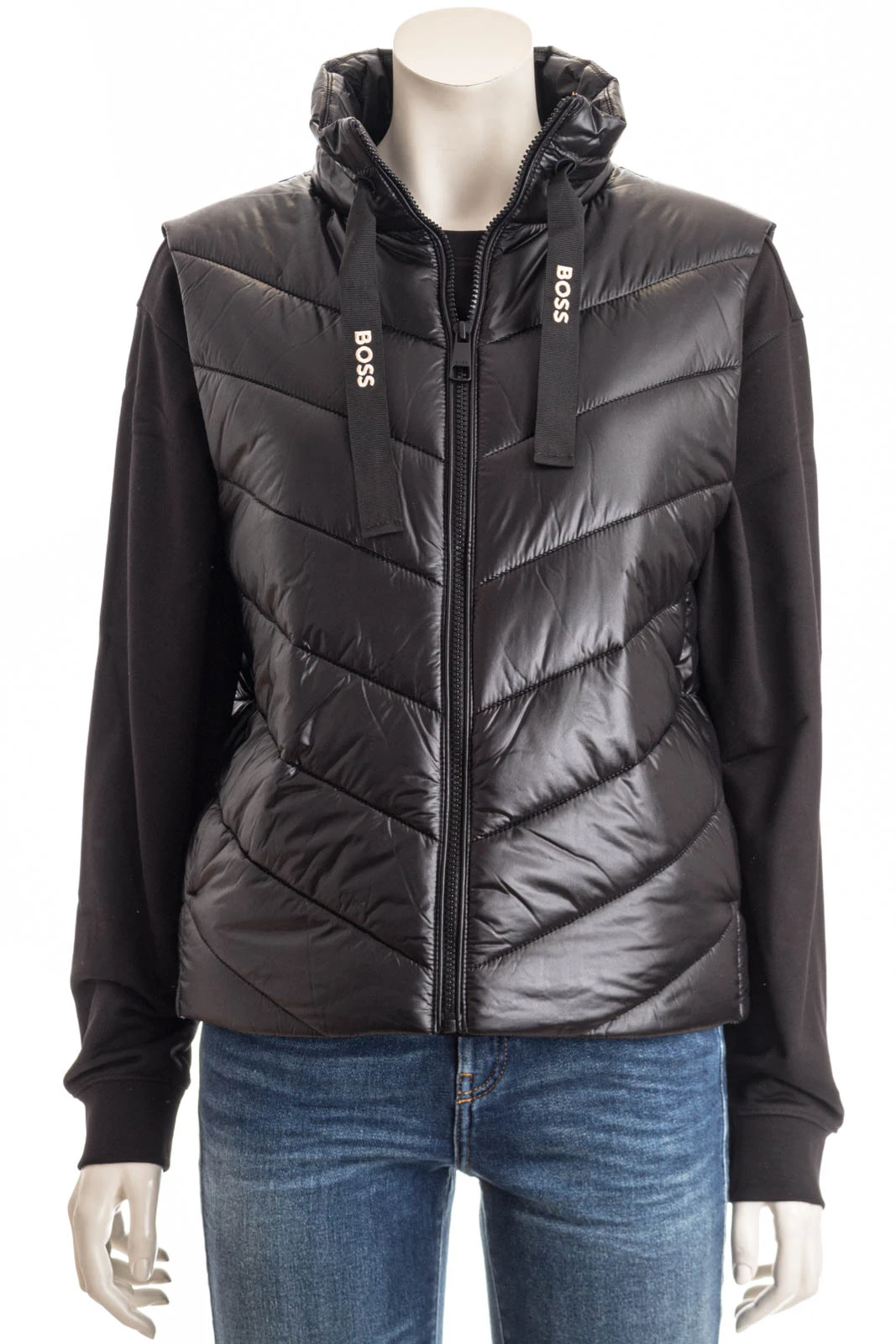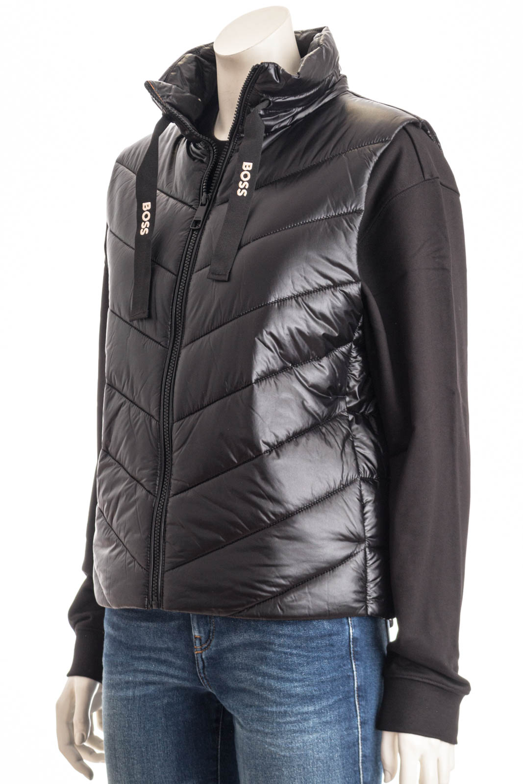 Wasserabweisende Weste mit softem Schimmer. Die Damen-Weste mit Reißverschluss ist mit dem BOSS-Logo auf den Bändern am Kragen bedruckt. Eine leichte Füllung rundet den Style ab.
