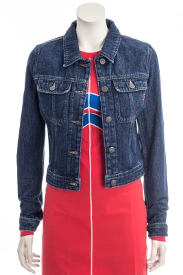 Kurze, schmall geschnittene Jeansjacke mit aufgesetzten Brusttaschen und gesticktem DIESEL-Logo.