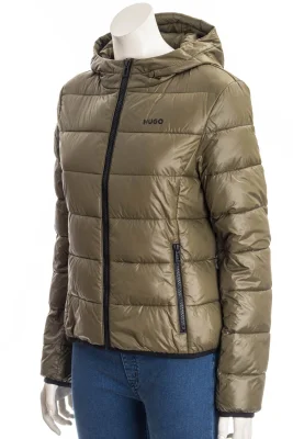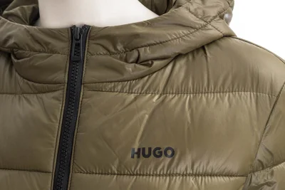 Die Damen-Jacke mit Kapuze und wasserabweisendem Finish ist mit einer leichten Füllung ausgestattet. Auf der linken Brust befindet sich ein charakteristischer HUGO Logo-Print.