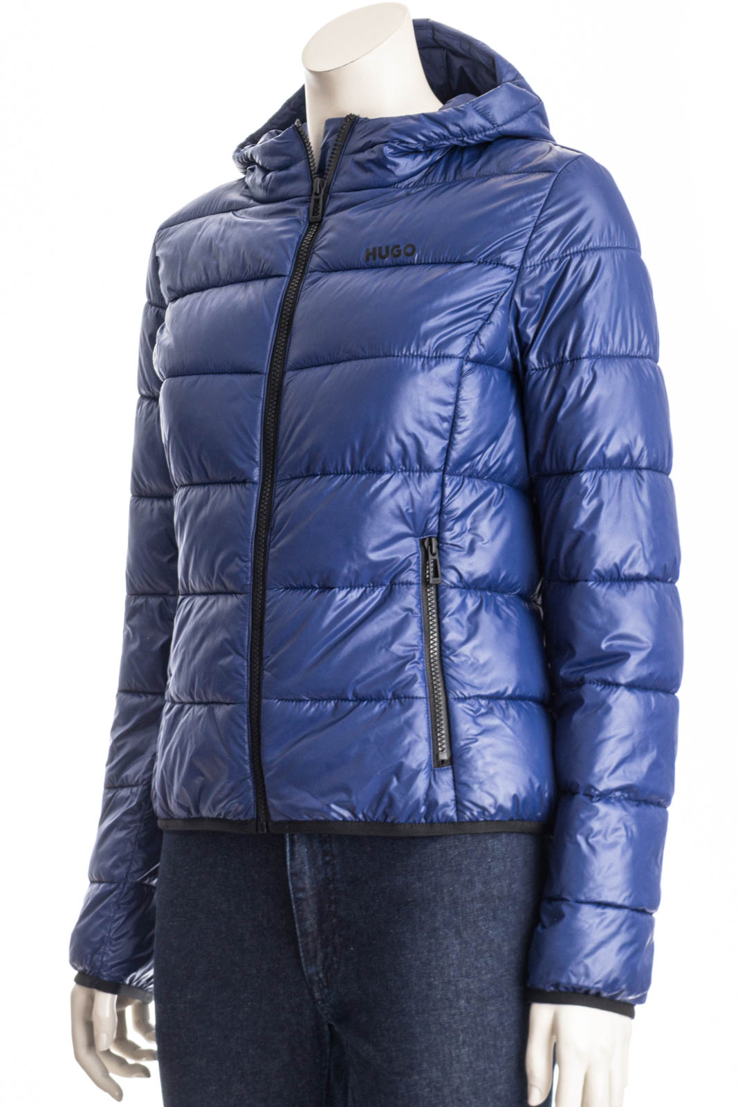 Die Damen-Jacke mit Kapuze und wasserabweisendem Finish ist mit einer leichten Füllung ausgestattet. Auf der linken Brust befindet sich ein charakteristischer HUGO Logo-Print.