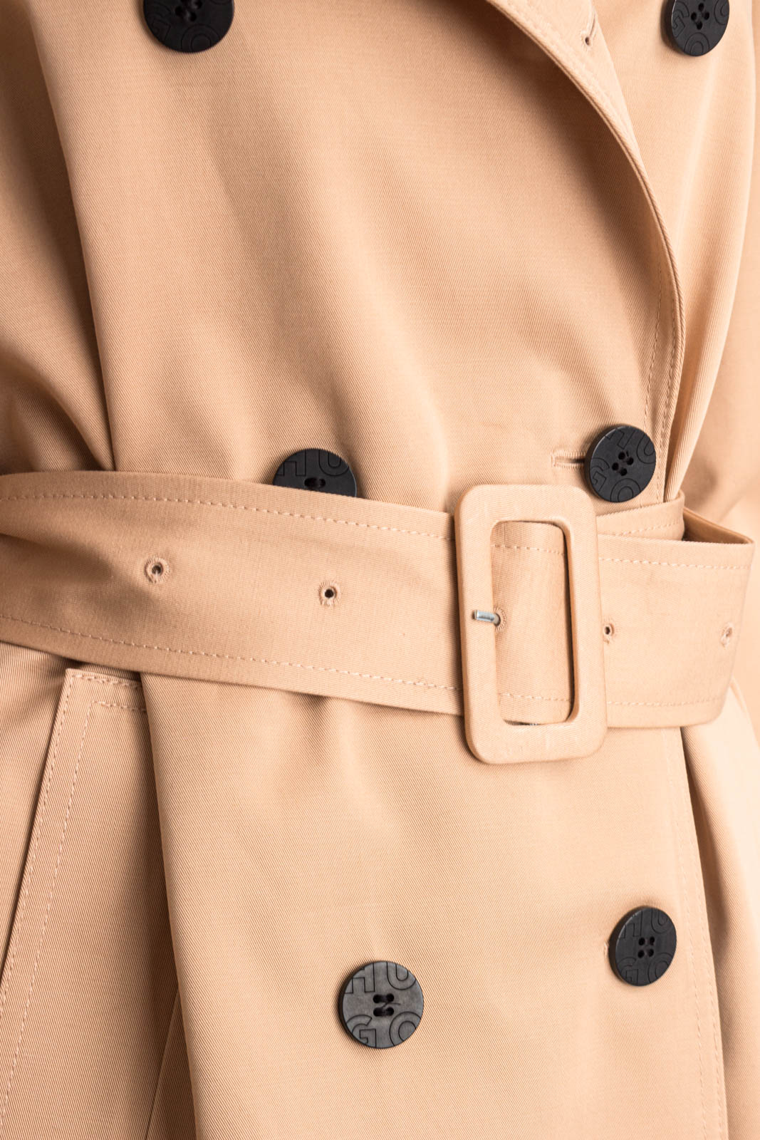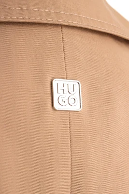 Zeitloser HUGO Trenchcoat. Der Mantel mit Oversize-Passform ist aus Baumwolle gefertigt und präsentiert sich mit einer zweireihigen Knopfleiste und einem Gürtel mit Schließe.