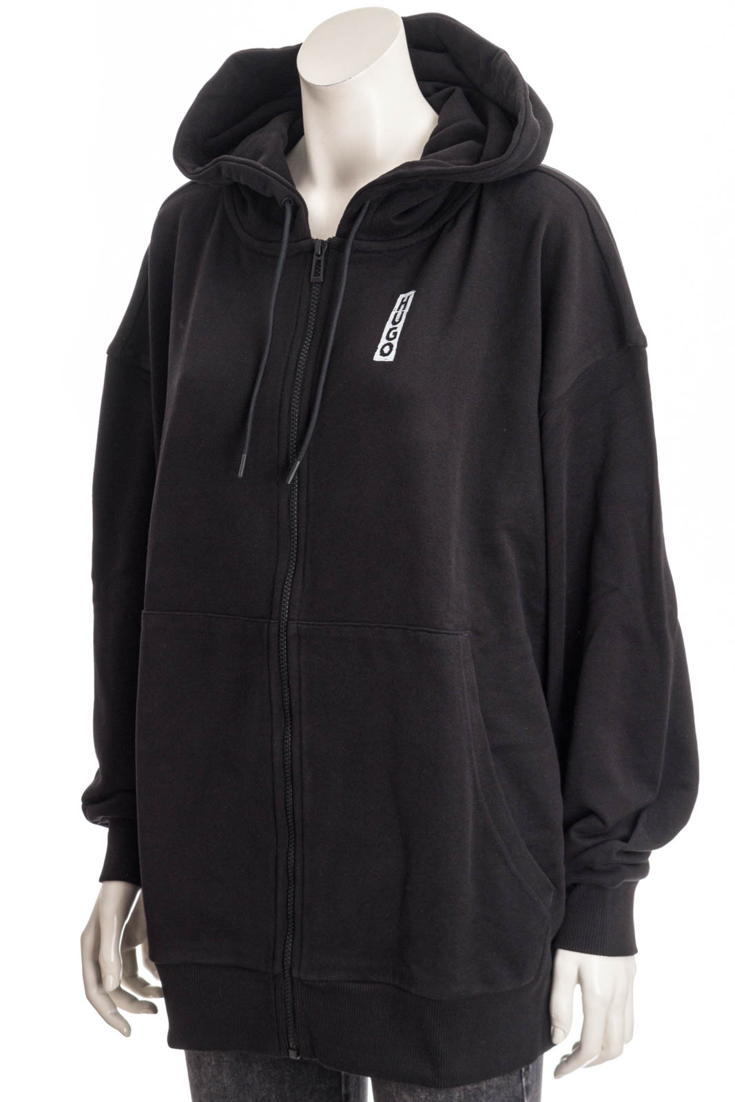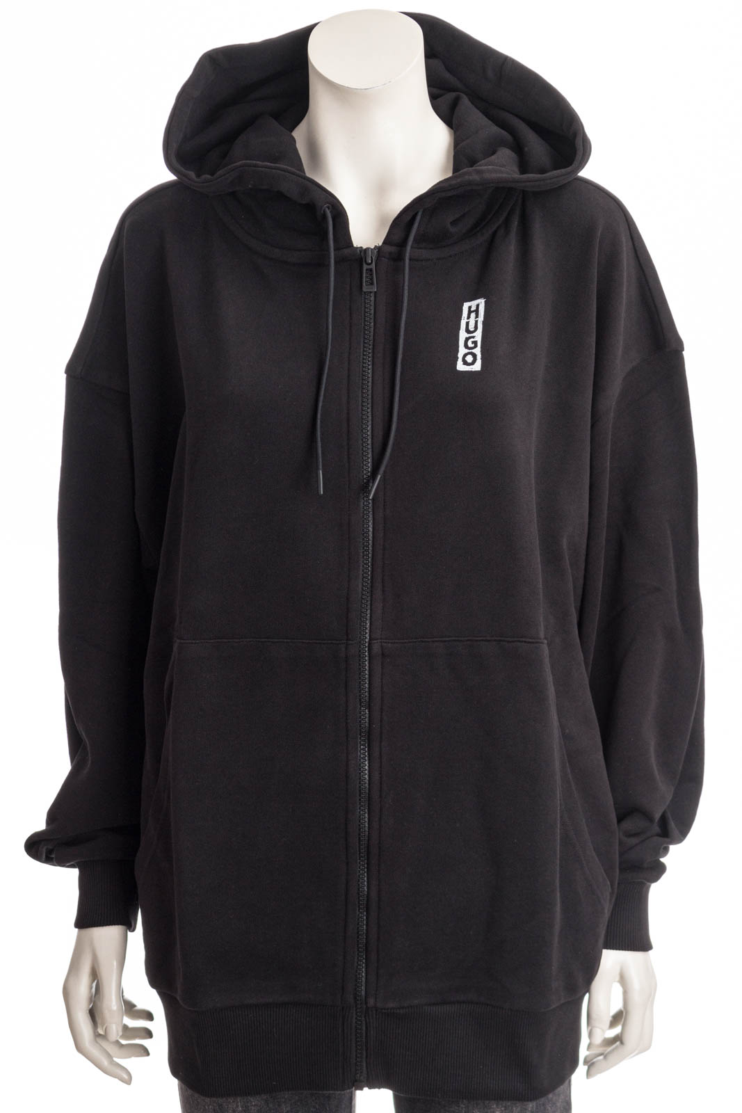 Lang geschnittene HUGO Kapuzen-Sweatjacke mit Reißverschluss und gerader Passform, die aus angerautem Terry gefertigt und mit einem Logo im Marker-Stil versehen ist.