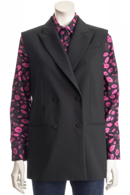 Ärmelloser HUGO Blazer im progressiven Design. Der zweireihige Style mit gerader Passform und Paspeltaschen ist aus einem elastischen Gewebe gefertigt.