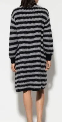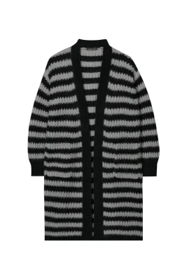 Cardigan in langer Passform aus einer Woll-Alpaka-Mischung mit zwei aufgesetzten Taschen. Das offene Rippstrickmuster ist in zweifarbigen Streifen gearbeitet.