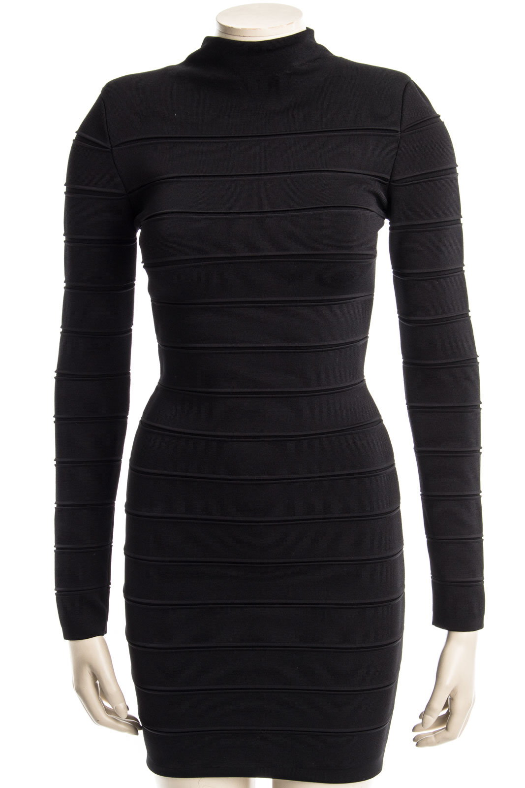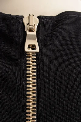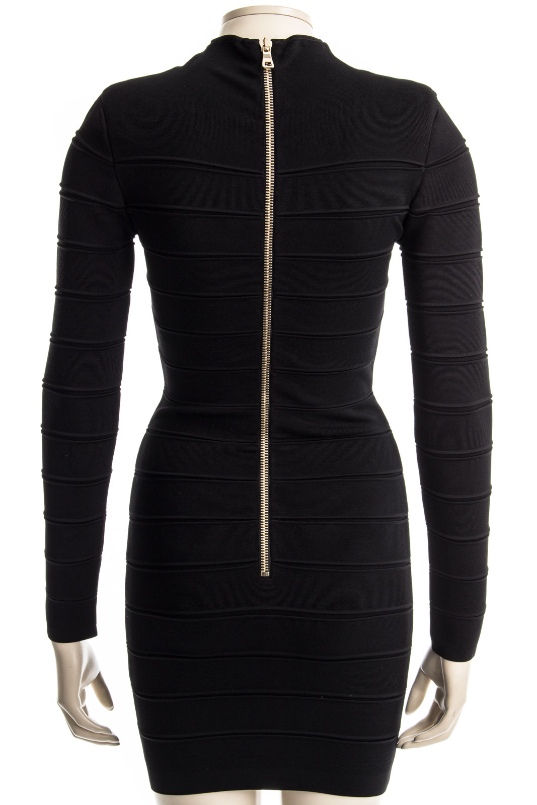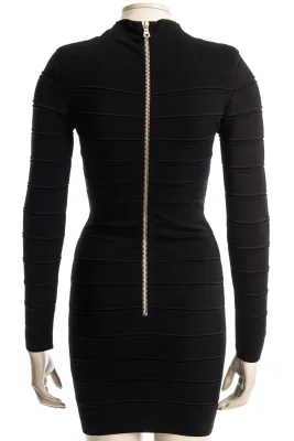 Feminin eng geschnittenes Kleid mit langen Arm und raffiniertem goldfarbenden Reißverschluss auf der Rückseite.