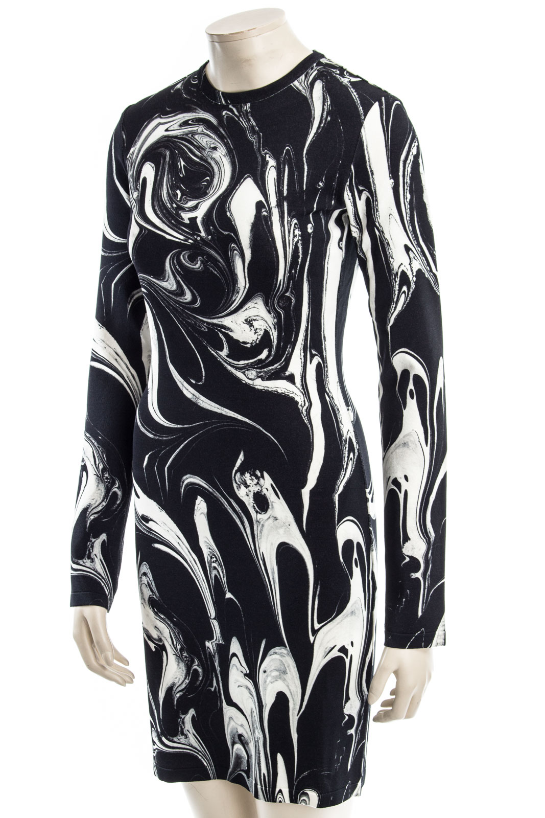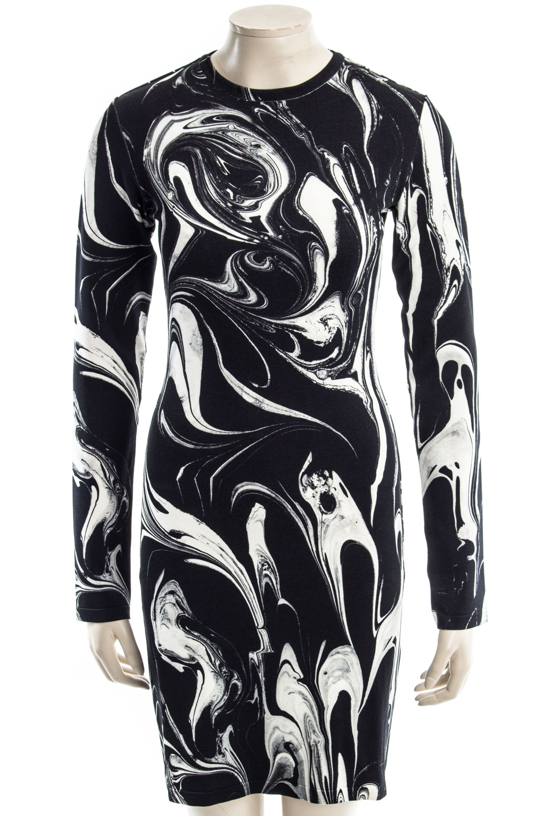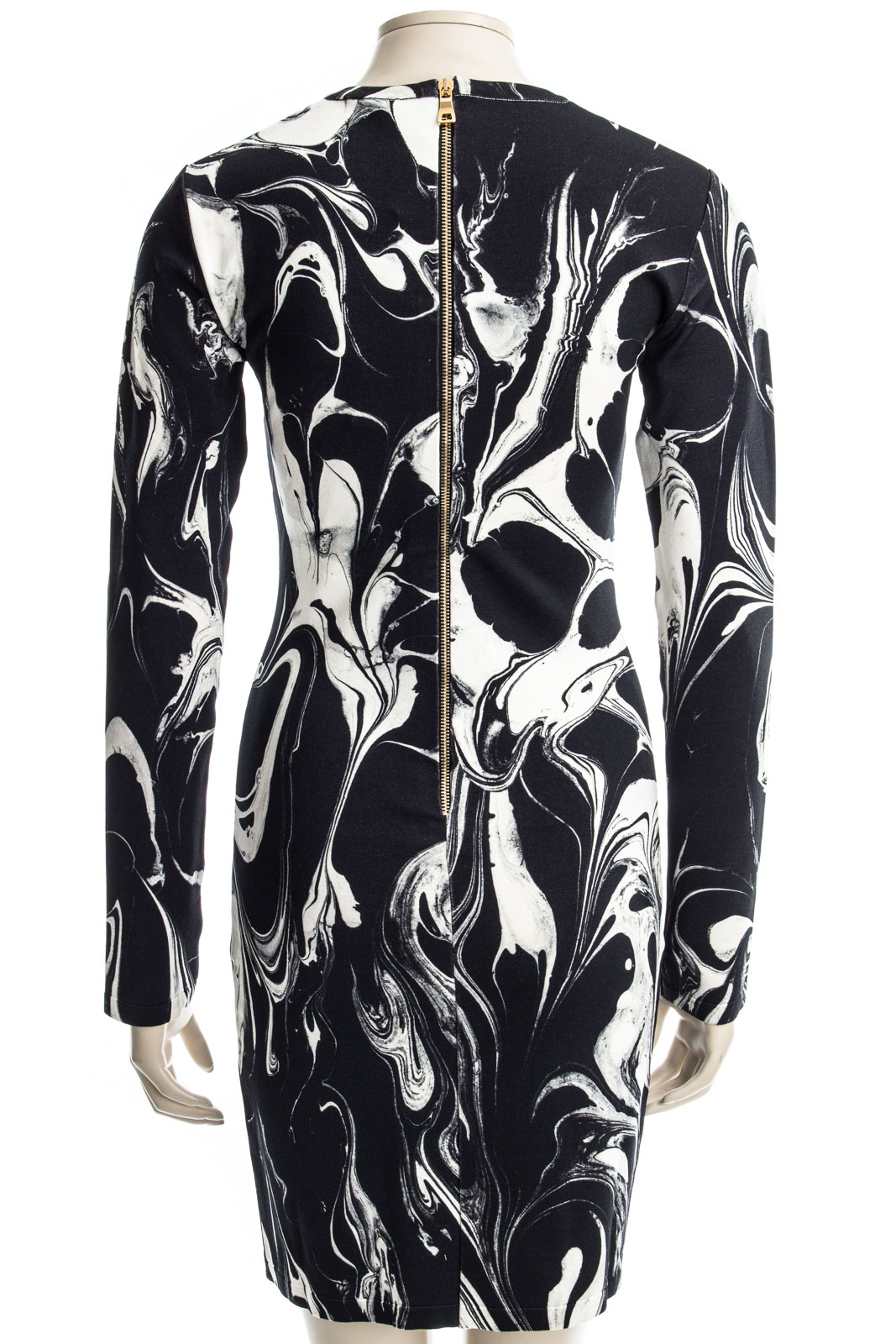 Langärmliges Kleid mit goldfarbenden Reißverschluss auf der Rückseite.