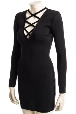 Eng anliegendes Kleid mit BALMAIN-Typischen Schulterpolstern und einem raffiniertem Ausschnitt.