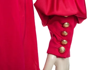 Dieses luxuriöse Kleid von Balmain in leuchtendem Fuchsia macht es im Handumdrehen zum Mittelpunkt jeder Party.