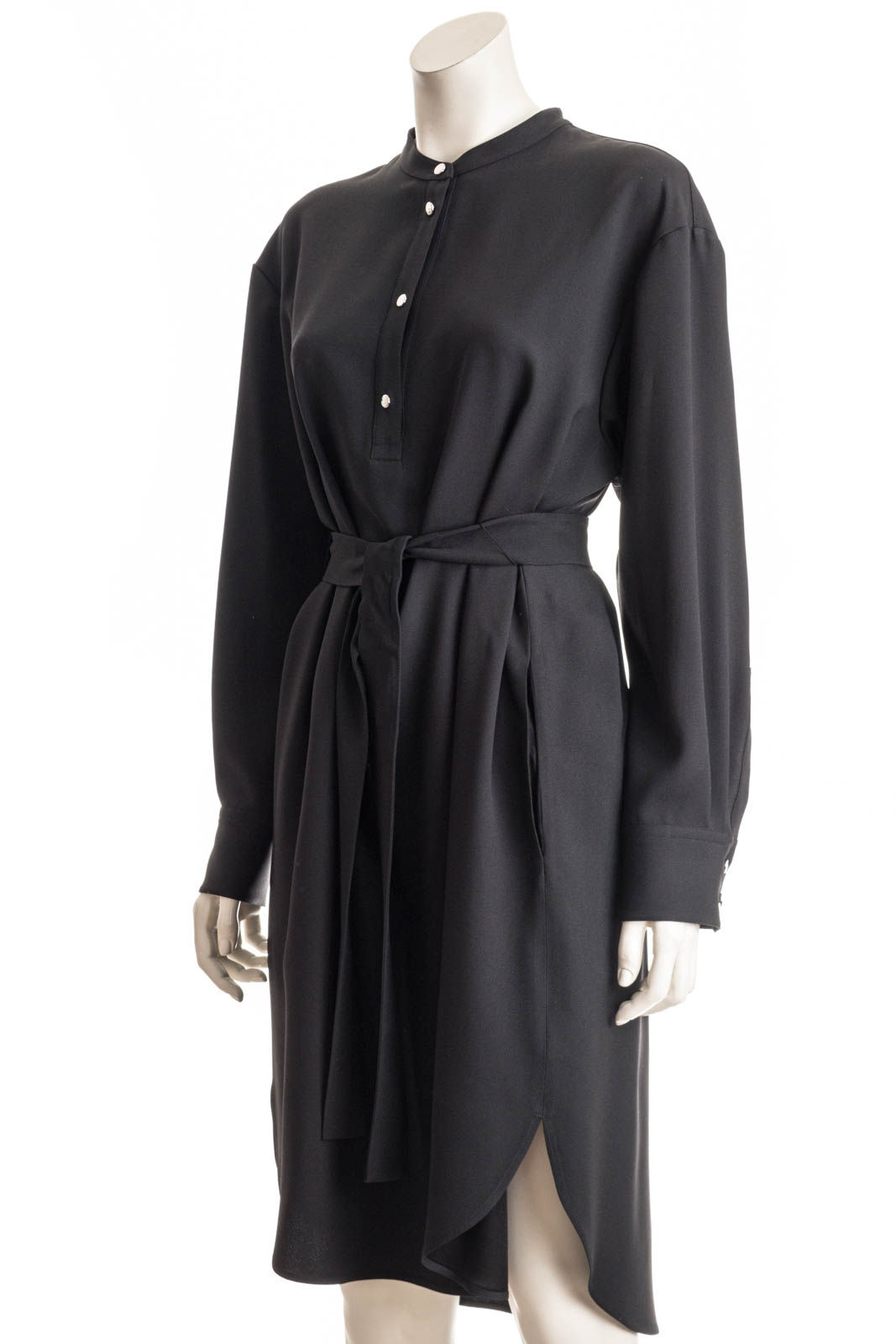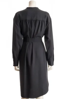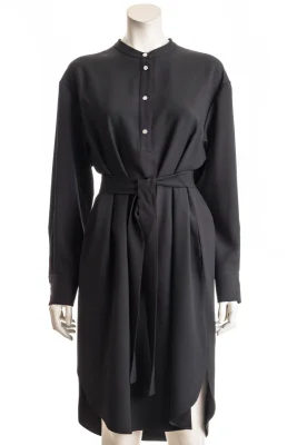Kragenloses BOSS Kleid mit gerader Passform, Knopfleiste, langen Ärmeln und schmeichelhaftem Gürtel.