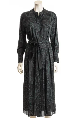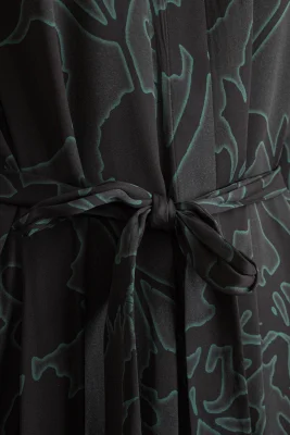 Leicht fallendes BOSS-Kleid mit Bindegürtel und V-Ausschnitt.