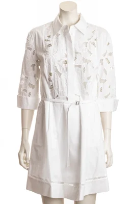 Elegantes Kleid aus Baumwoll-Mix mit schicker Lochstickerei und Gürtel.