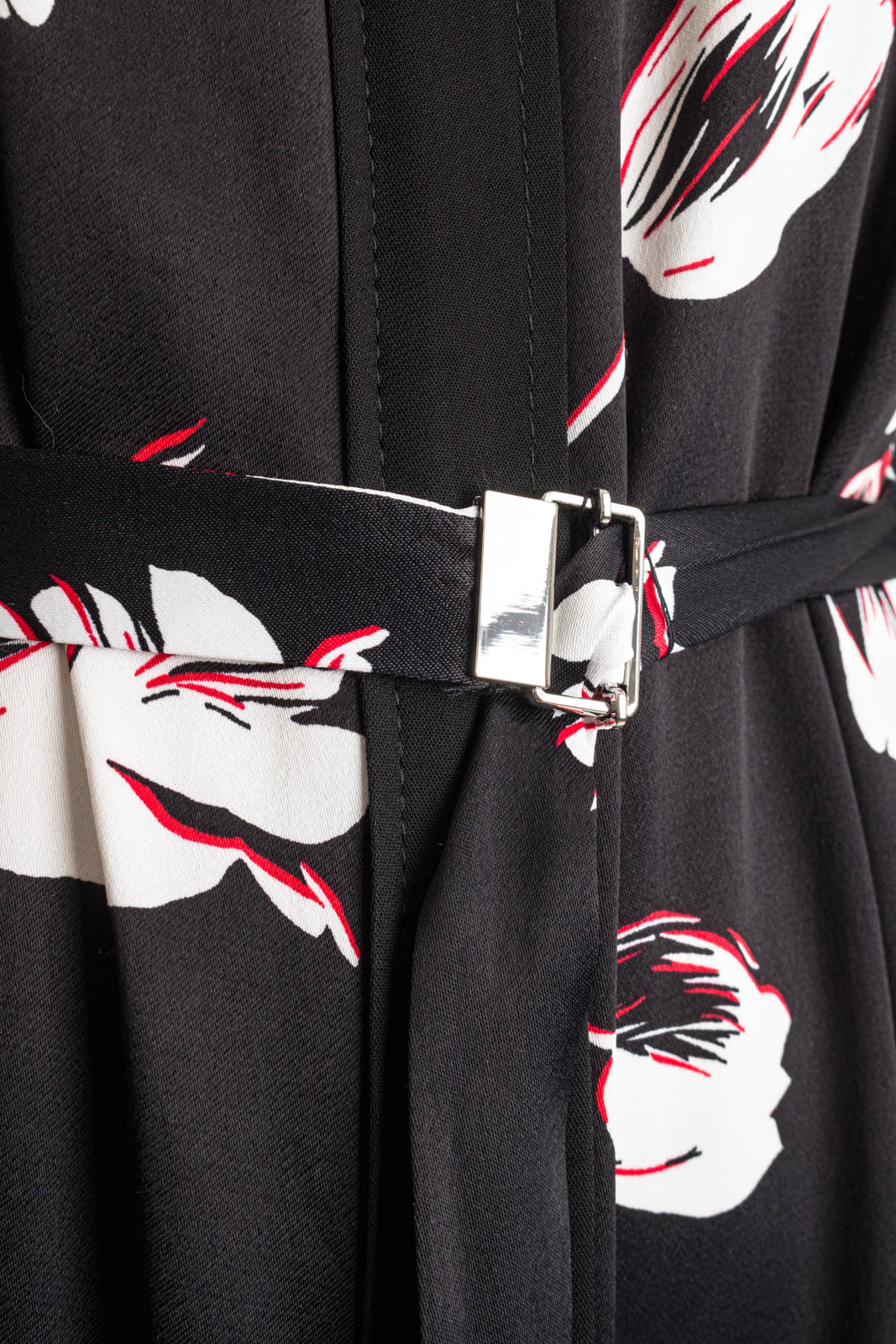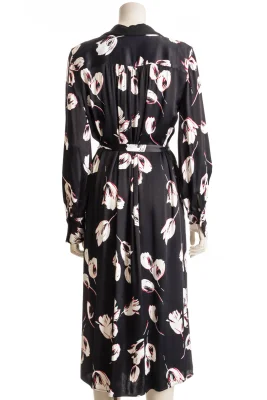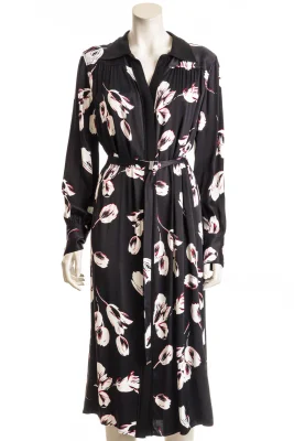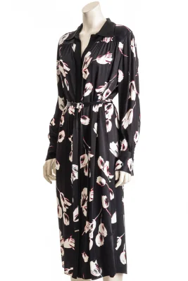 Feminines BOSS Kleid mit Tulpen-Print der Saison. Der Style mit V-Ausschnitt ist aus leichtem Satin mit elegantem Fall gefertigt.