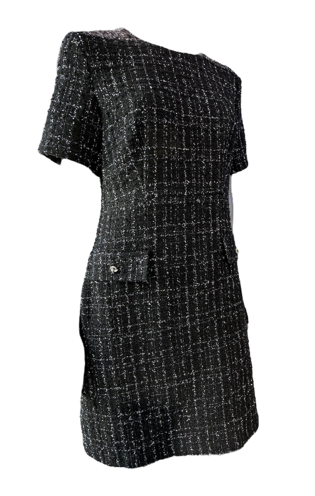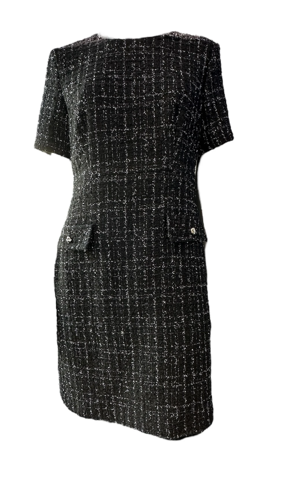 Elegantes BOSS Kleid aus Tweed. Das zeitgemäße Kleid mit zwei Taschen auf der Vorderseite ist aus einem Material-Mix mit Woll- und Baumwoll-Anteil gefertigt für einen charaktervollen Look. Das Kleid mit kurzen Ärmeln wird mit einem praktischen Reißverschluss auf der Rückseite geschlossen, der mit einem Logo-Schieber versehen ist.