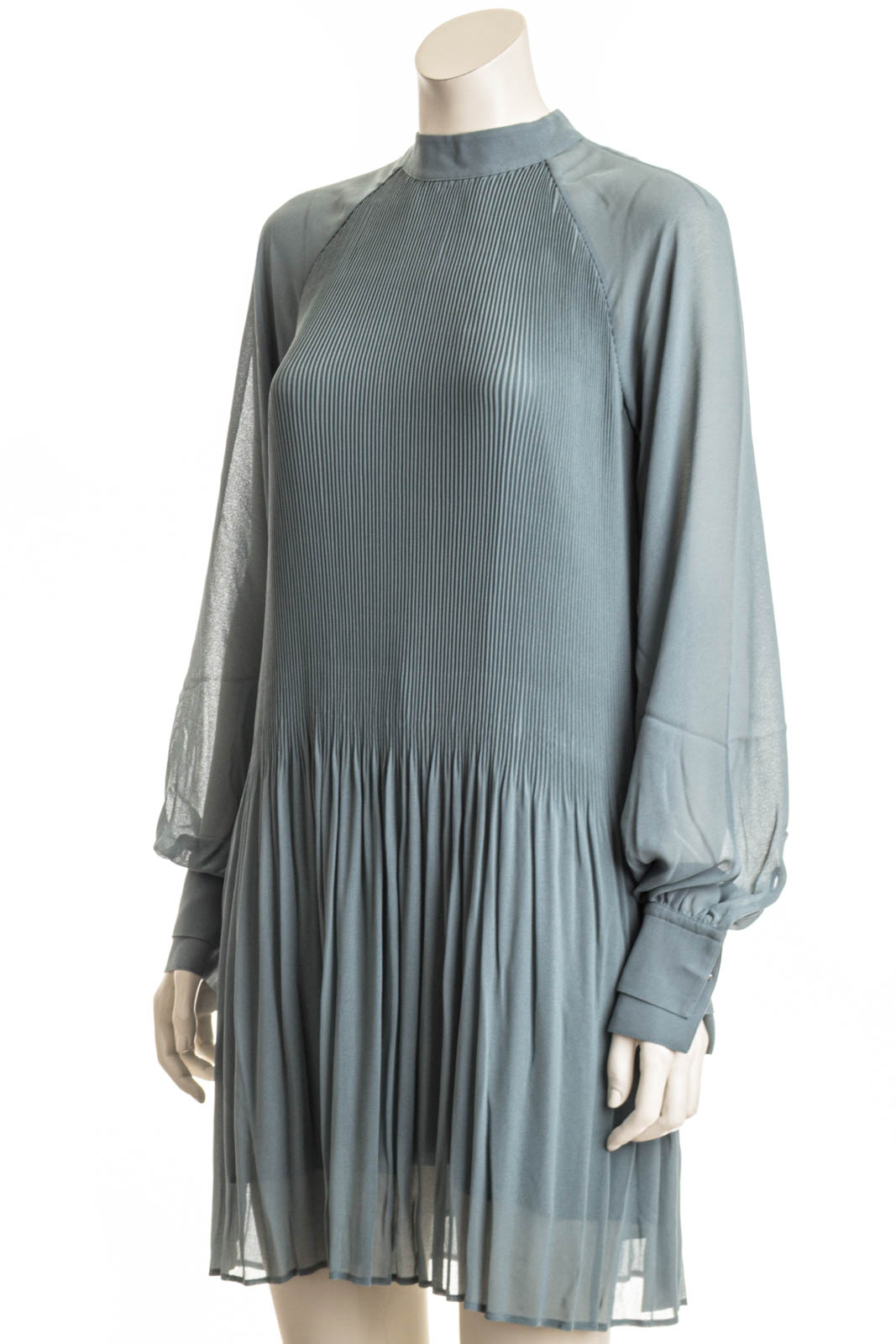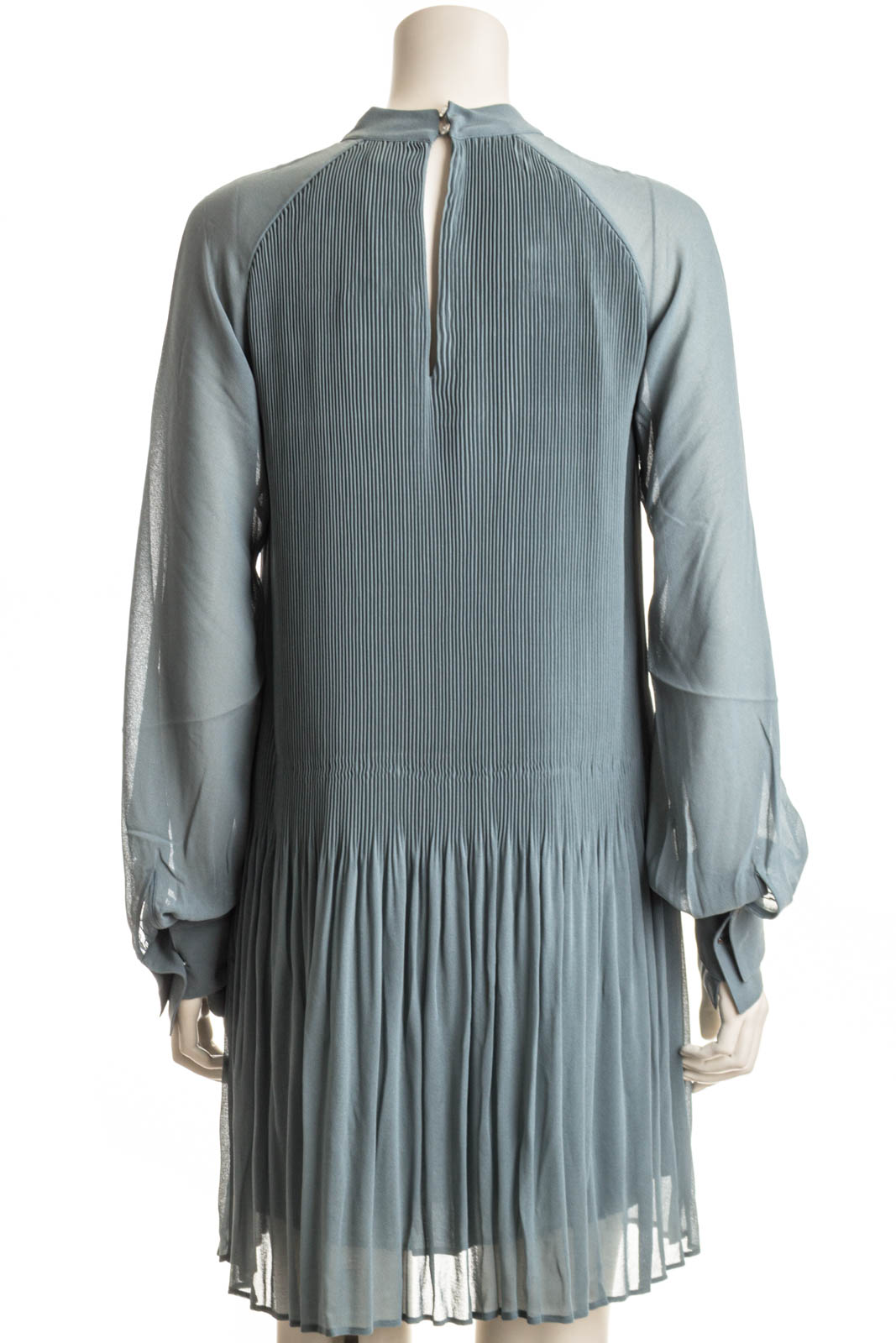 Elegantes BOSS Kleid mit Plissee-Falten. Der markante Style ist mit transparenten Ärmeln, einem hohen Ausschnitt und einem Schlüsselloch-Detail auf der Rückseite versehen.