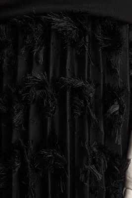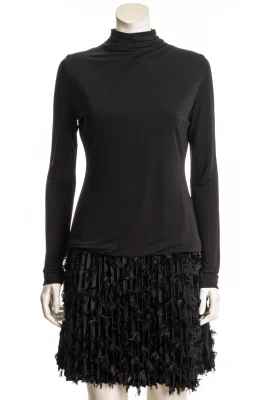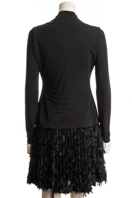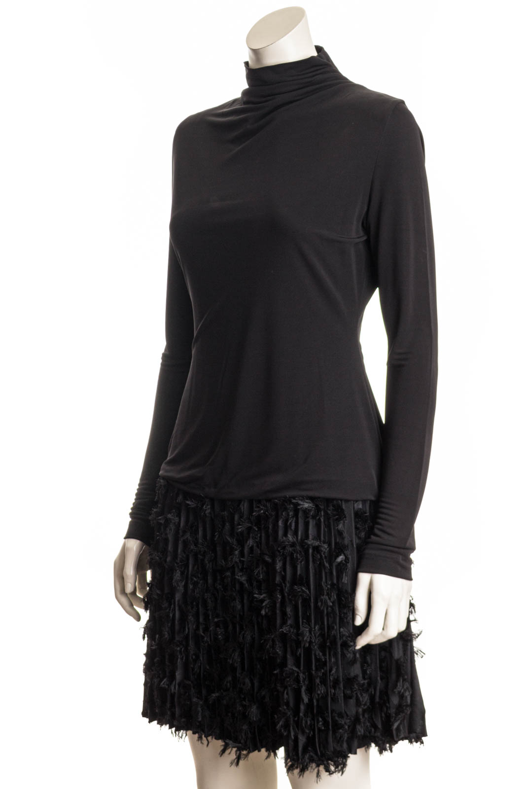 Das BOSS Kleid aus glattem Jersey ist mit Federn an den Plissee-Falten versehen und sorgt für einen souveränen Party-Look. Chimney-Kragen. Ärmel mit Überlänge.