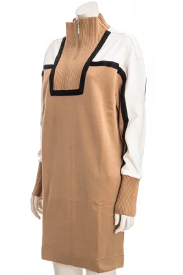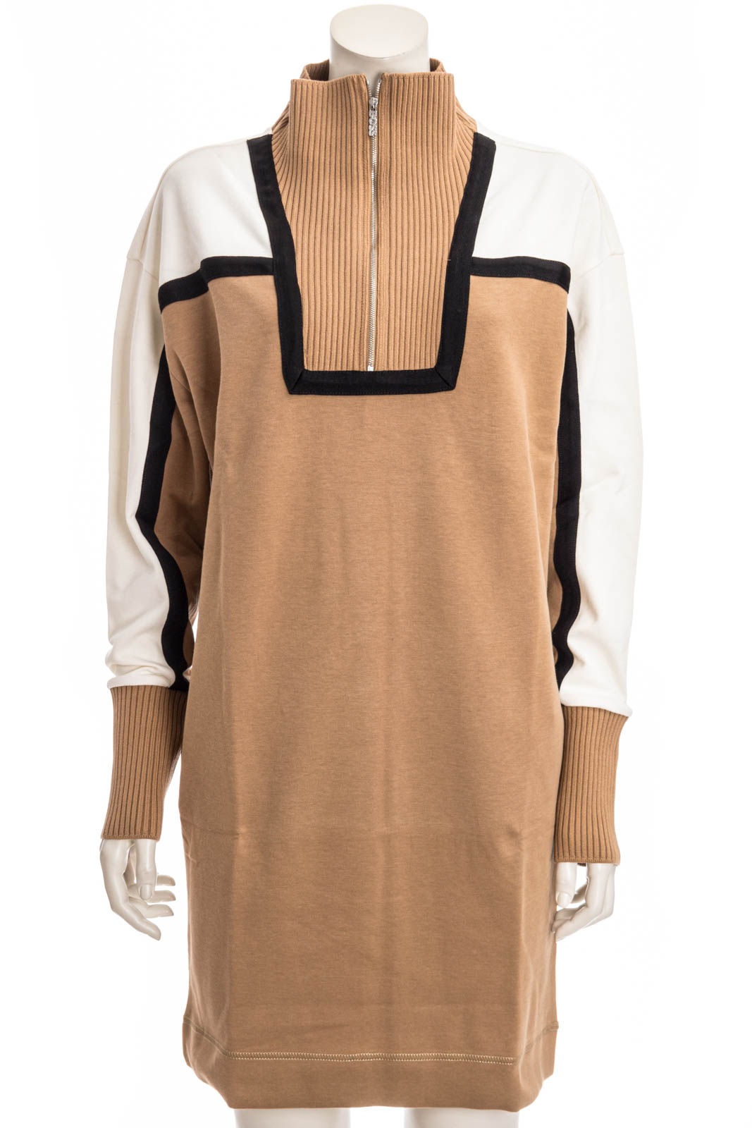BOSS Kleid aus softem Jersey im Colour-Block-Design mit Reißverschluss am Kragen, langen Ärmeln und gerippten Abschlüssen.