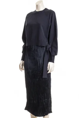 Das BOSS Kleid mit abnehmbarem Pullover aus einem Woll-Mix mit Kaschmir-Anteil und Bindeband ist ein vielseitig kombinierbarer Style.