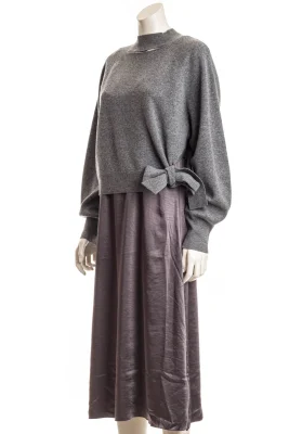 Das BOSS Kleid mit abnehmbarem Pullover aus einem Woll-Mix mit Kaschmir-Anteil und Bindeband ist ein vielseitig kombinierbarer Style. FlieĂźendes Gewebe.