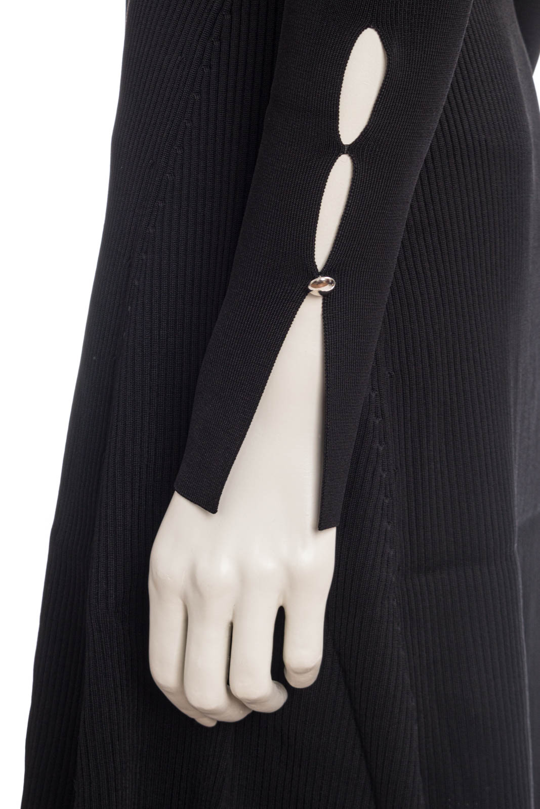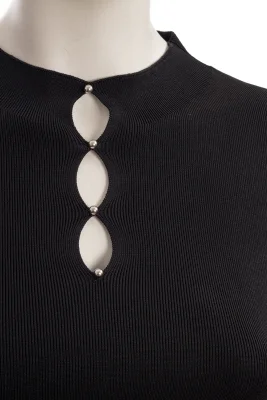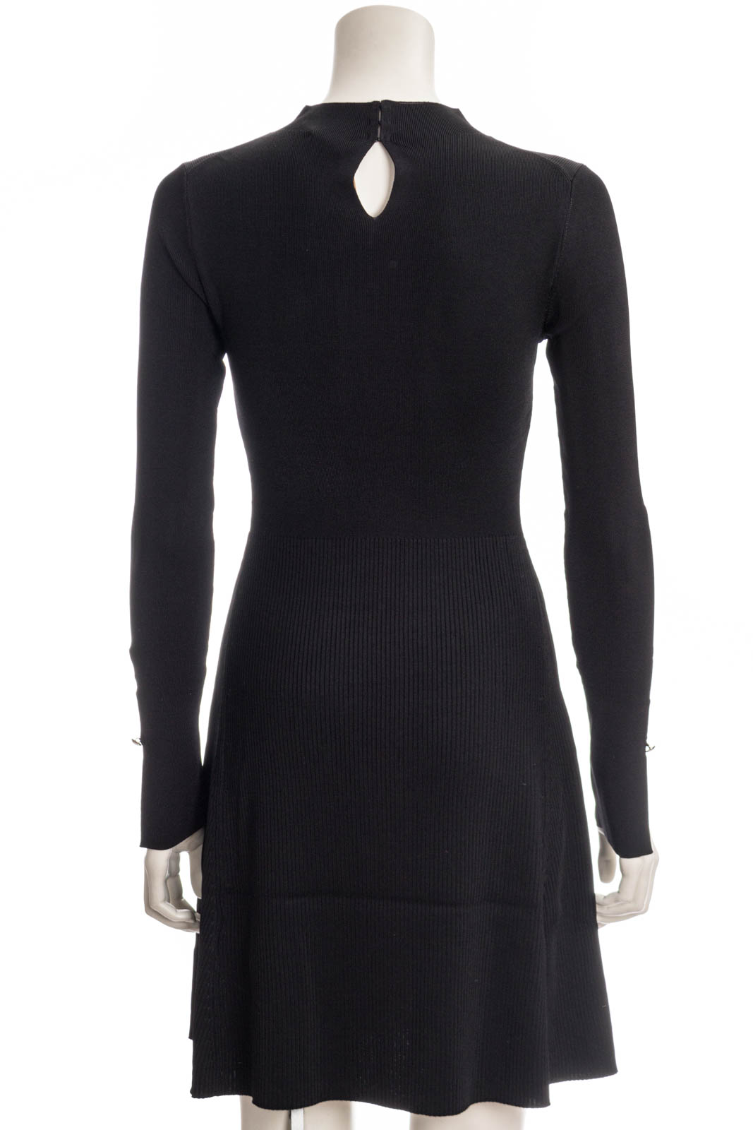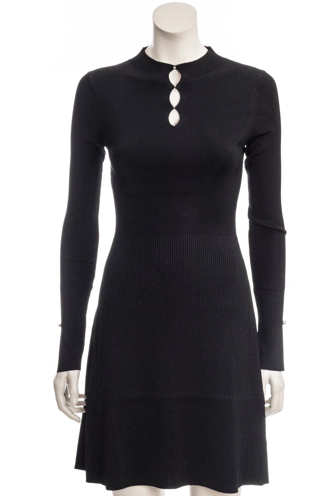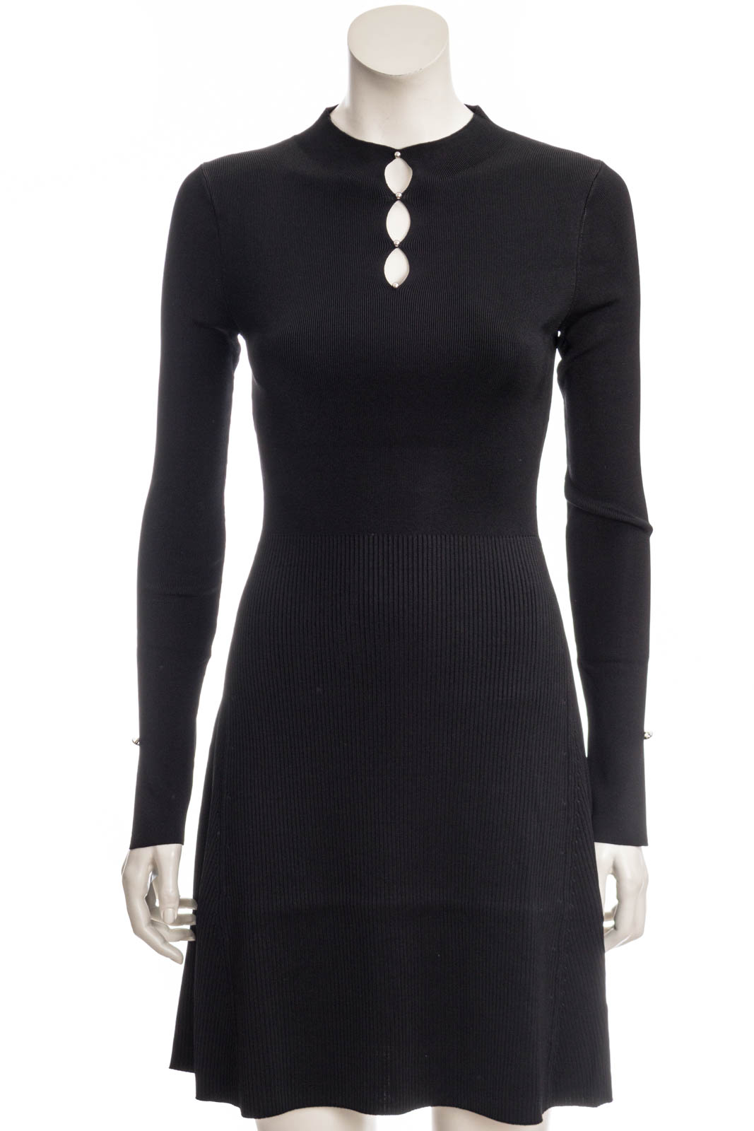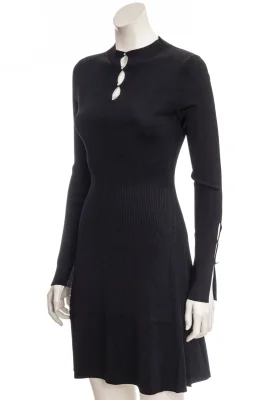 Gestricktes BOSS Langarm-Kleid aus Stretch-Garnen, das sich mit einer gerippten Struktur und einem markanten Ausschnitt präsentiert.