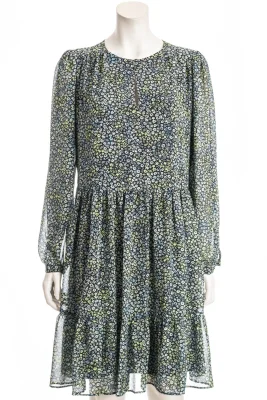 Gerade geschnittenes BOSS Langarm-Kleid aus bedrucktem Krepp-Georgette mit softem Unterkleid.